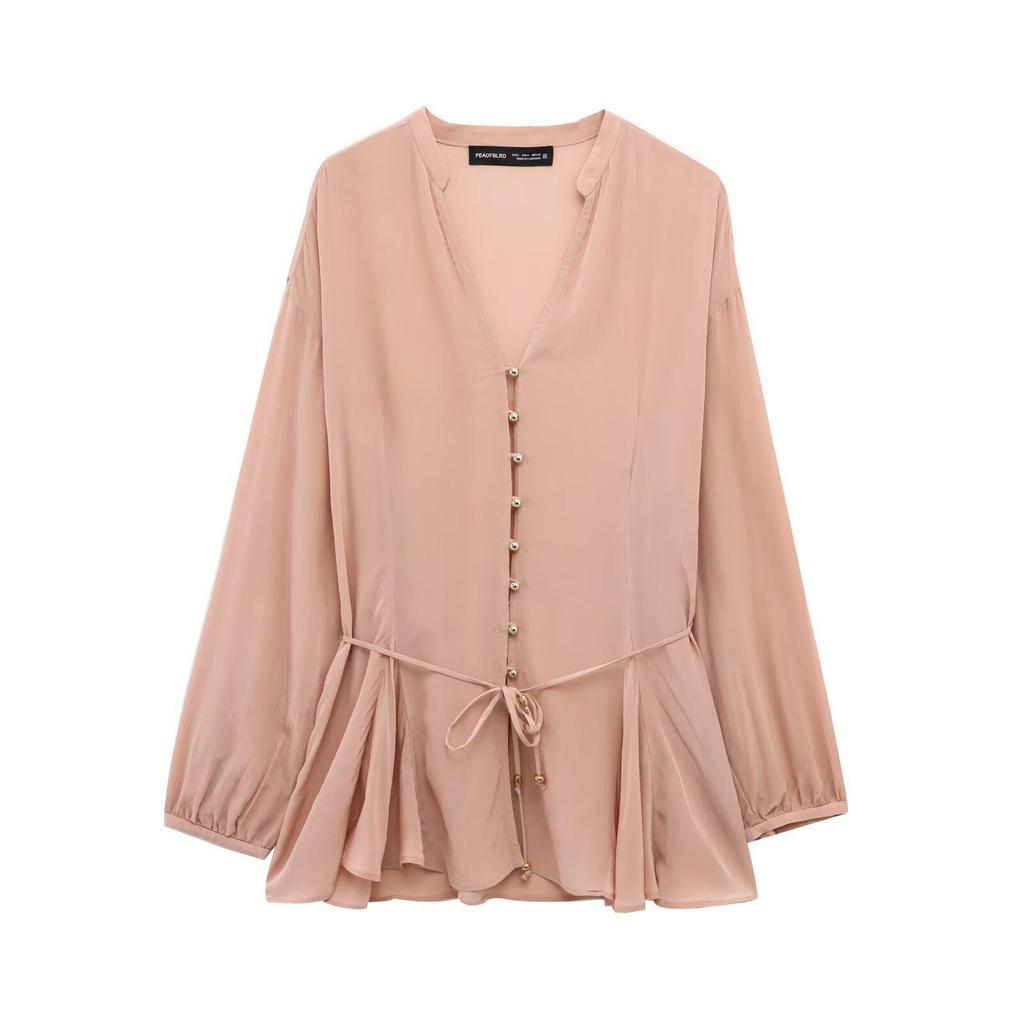 2025 Spring European & American Style Women's Long-Sleeve Belted Shirt - Versatile & Stylish