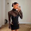 Europäisches & Amerikanisches Minikleid mit hohem Kragen, Mesh-Bodycon und Cut-out-Design