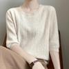 Damen Jacquard Lochmuster Rundhals Stricktop - Frühling und Herbst Kollektion