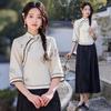 Republic of China Style Women's Retro Embroidered Cotton-Linen Hanfu Zen Tea Suit