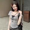 Women's Grey Lace Patchwork Bowknot T-Shirt - Slimming Summer Top