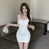 Weißes Spitzen-Camisole-Kleid: Damen Schlankmachendes & Figurbetontes Sommer-Bodycon für Zierliche Figuren