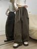 Damen Übergröße Schwarze Baumwoll-Cargohose - Neuer Amerikanischer Casual Jazz Stil, Lockere Passform, Weites Bein, Sportliche Lange Hose
