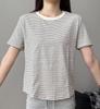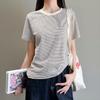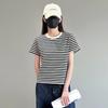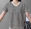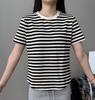 Women's High-End Hong Kong Style Black & White Striped Loose Summer T-Shirt