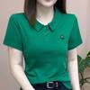 Women's Embroidered Short Sleeve Polo Blouse - Slimming, Loose-Fit, Age-Reducing Summer Top