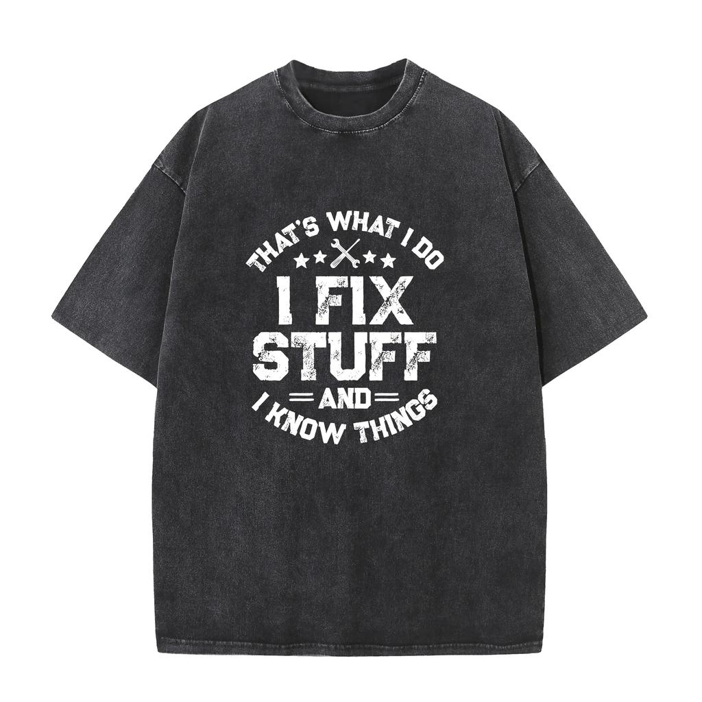 Herren Lustiges Ich repariere Sachen Washed Style T-Shirt Mechaniker Ingenieur Garage Gebleicht Bleichmittel Stil T-Shirt
