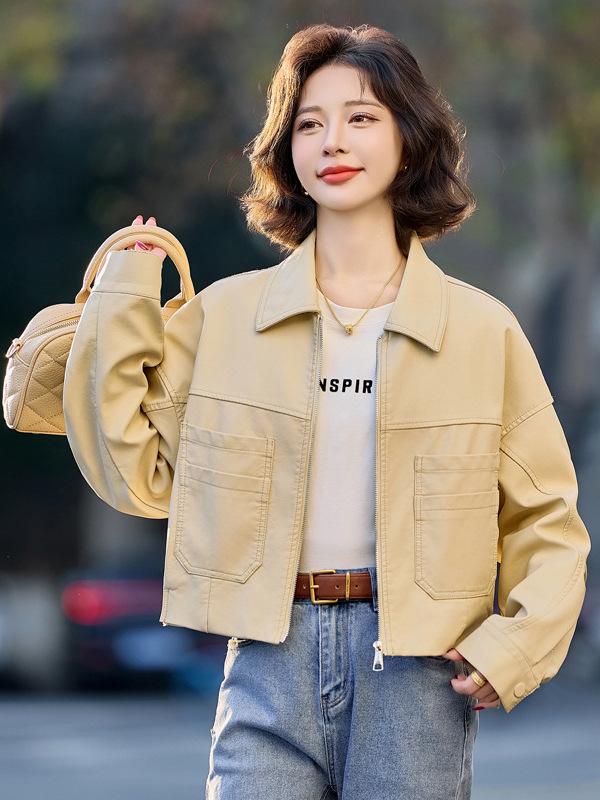 Women's Haining Genuine Leather Sheepskin Jacket, Small, Short, Plus Size, 2025 Spring/Autumn Collection