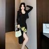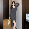 Spring Pure Desire Dress & Cardigan Set - Spaghetti Strap Slit Skirt + Long Sleeve Top