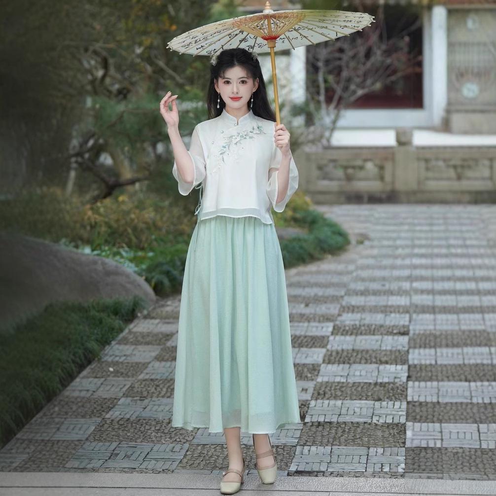 Chinese Retro Embroidered Tang Suit: Women's Han-Style Tea Set
