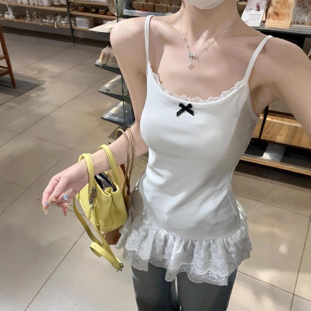 Ballet-Style White Lace Bow Camisole for Women - Spring/Summer 2025 Sleeveless Top