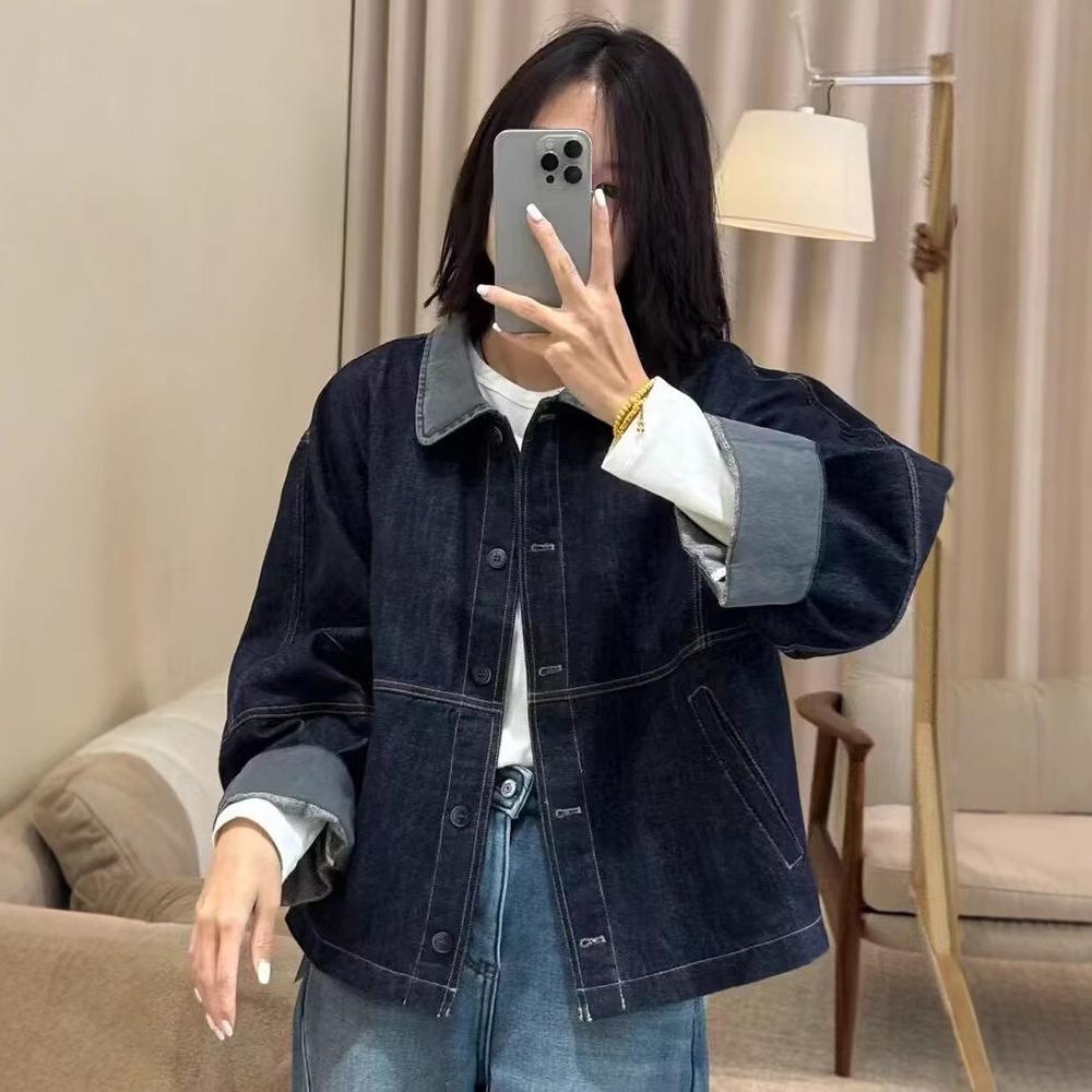 Damen Koreanische Retro Patchwork Jeansjacke - 2025 Frühling/Herbst Locker Lässig Workwear Oberteil
