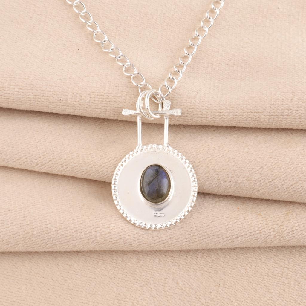 Natural Labradorite Gemstone 925 Sterling Silver Jewelry Handmade Pendant 1.4" PP-57-29