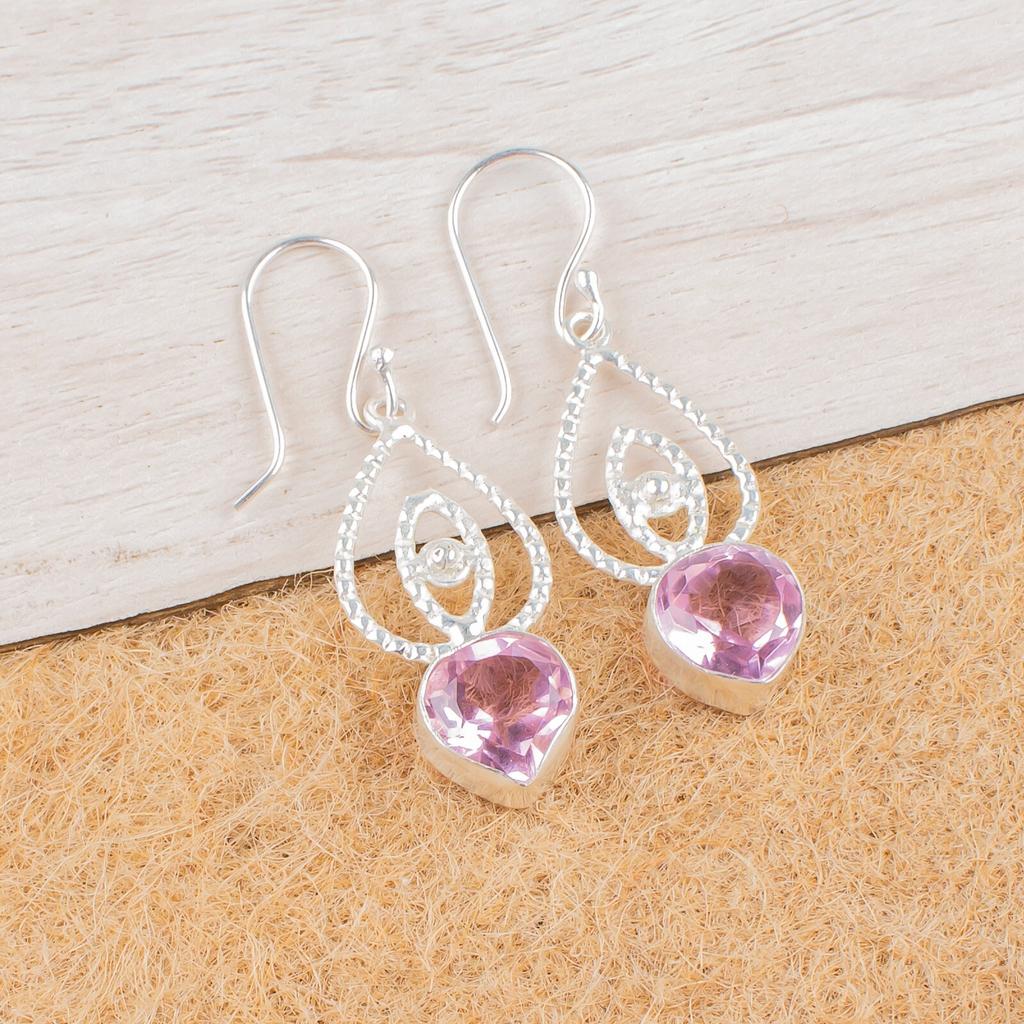 Morganite Gemstone 925 Sterling Silver Jewelry Drop/Dangle Women Earrings 2.00" EE-32-11