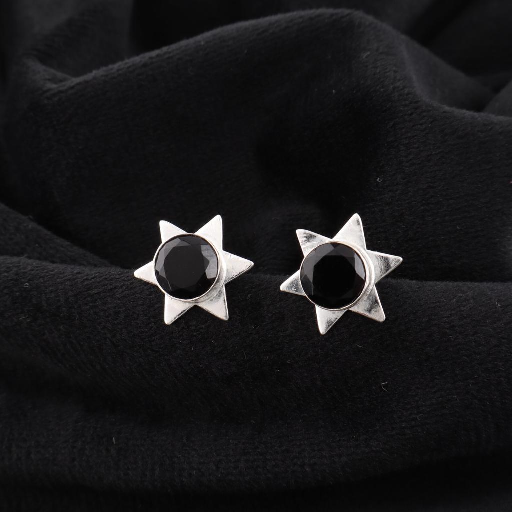 Schwarzer Onyx Edelstein 925 Sterling Silber Schmuck Handgefertigte Ohrstecker 0,44" EE-175-17