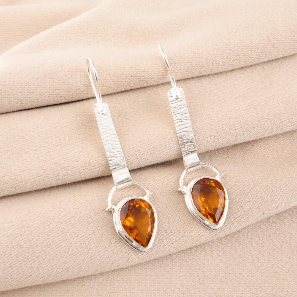 Citrin Edelstein 925 Sterling Silber Schmuck Handgemachte Ohrringe 2,3" Geschenk für Mama EE-166-4