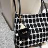 2023 Karierter Woll-Tote: Herbst/Winter Damen Vielseitige Schulter-Eimer-Tasche, Große Kapazität