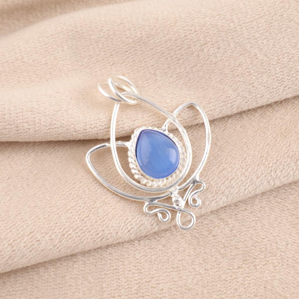Dark Blue Cat's Eye Gemstone 925 Sterling Silver Jewelry Handmade Chain Pendant PP-38-46