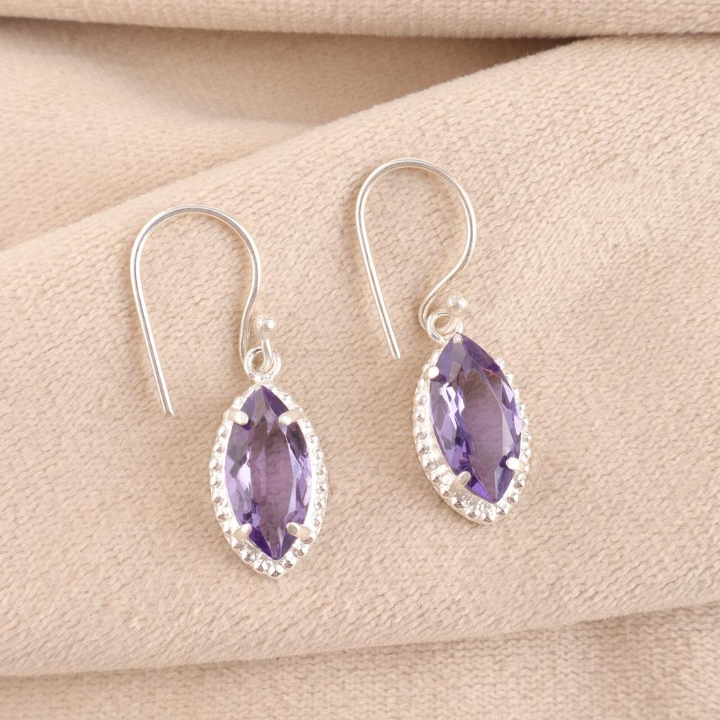 Natural Iolite Gemstone 925 Solid Silver Jewelry Handmade Earrings 1.4" For Her EE-169-10
