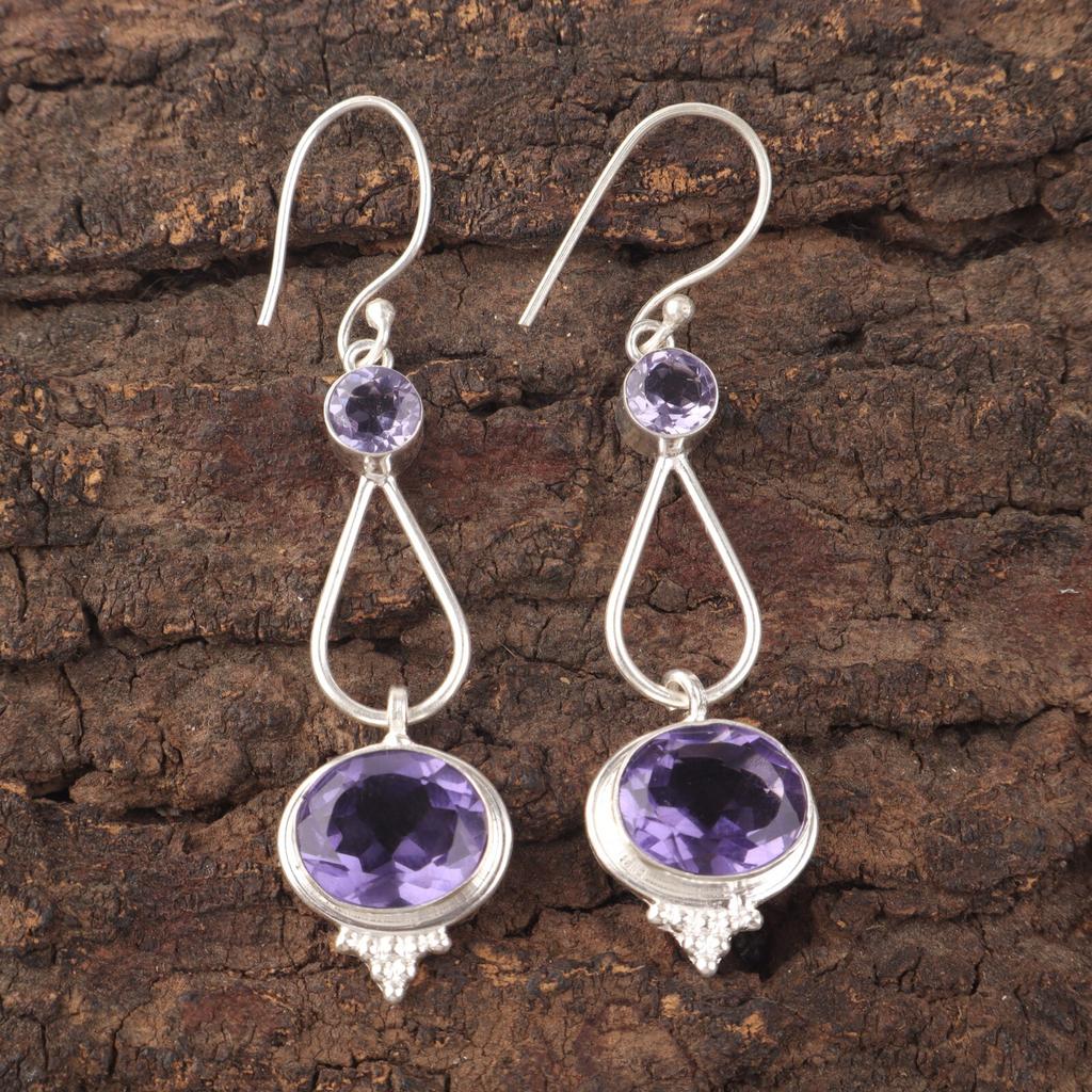 Natürlicher Iolith Edelstein 925 Sterlingsilber Schmuck Handgefertigte Hängeohrringe 2.50" EE-132-2