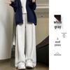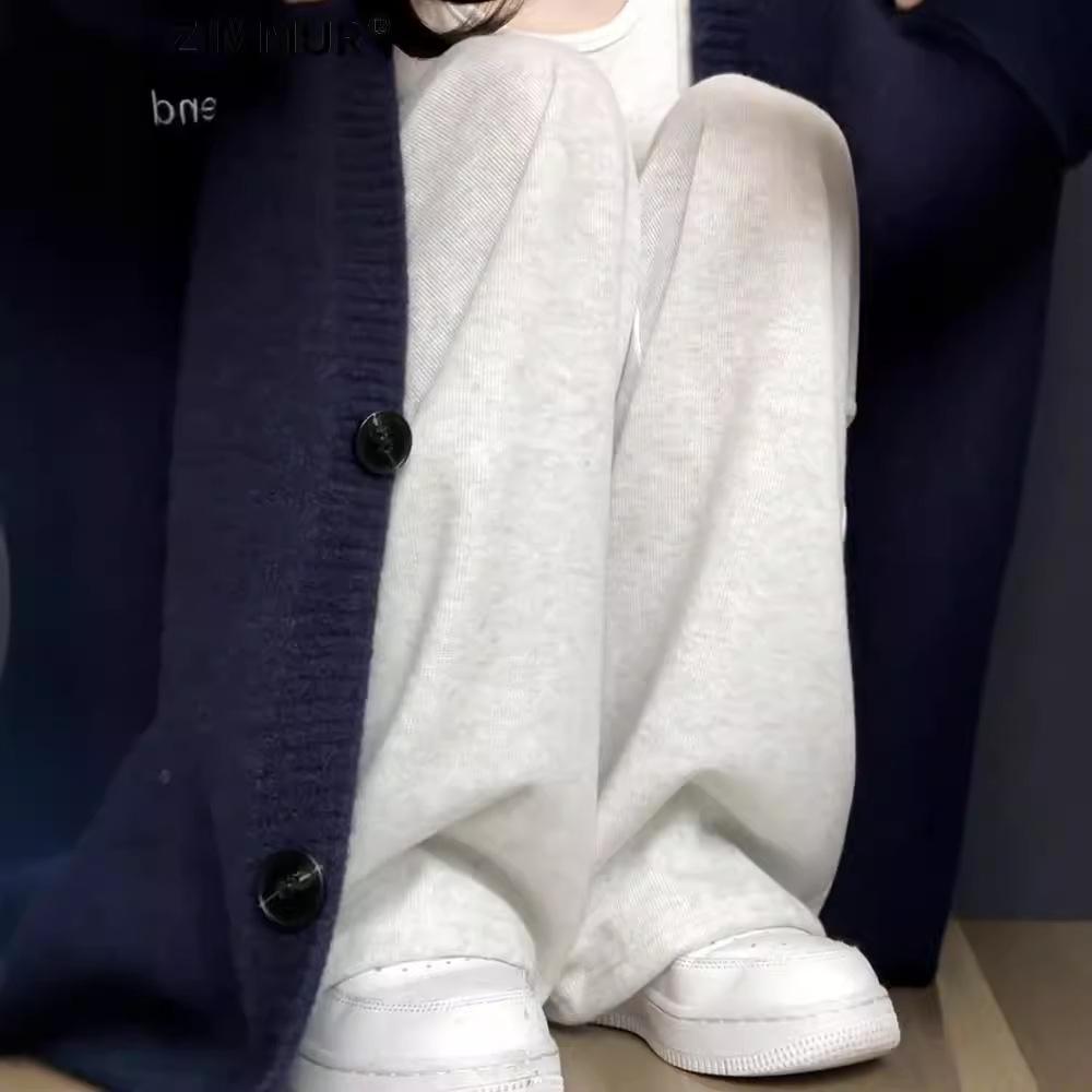 2024 Damen Weiß-Grau Hochtailliert Locker Weitbein Lässige Schlankmachende Jogginghose