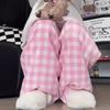 Damen Blaue Karomuster High-Waist Weitbein Petite Hose - Frühling/Sommer 2025 Kollektion