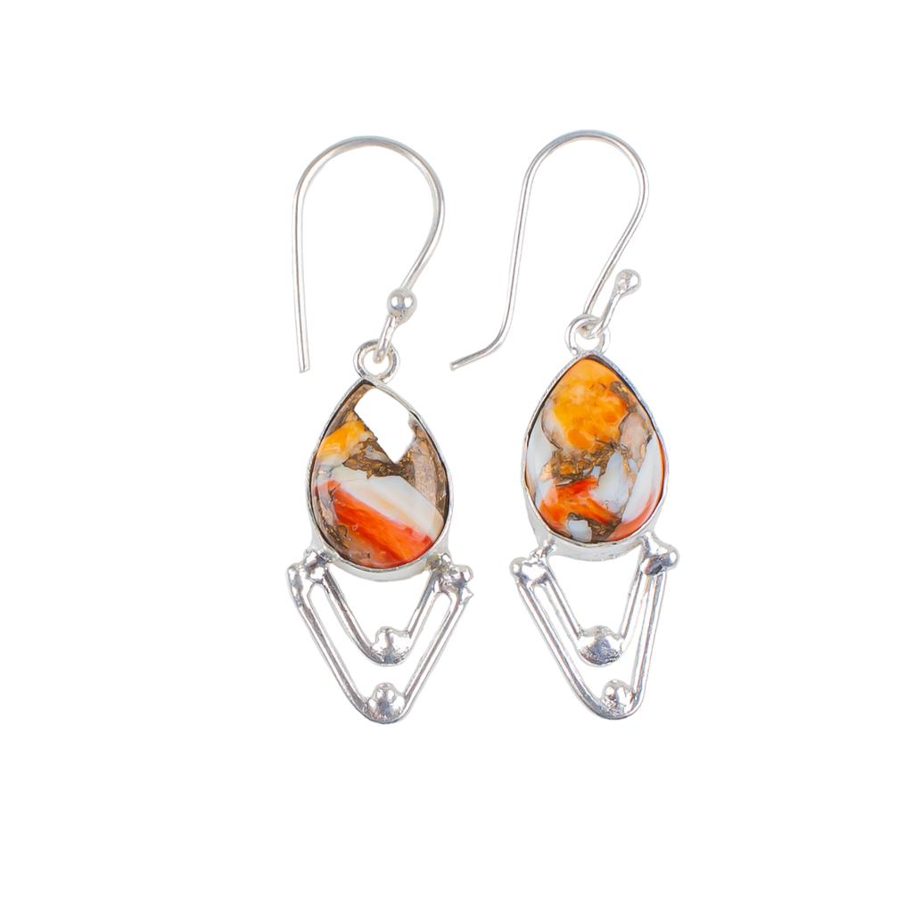 925 Sterling Silver Orange Copper Turquoise Gemstone Jewelry Hoop Earrings 1.90" EE-39-36