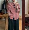 Damen Retro Rosa Cordhemdjacke - Herbst/Winter Langarm Oberteil