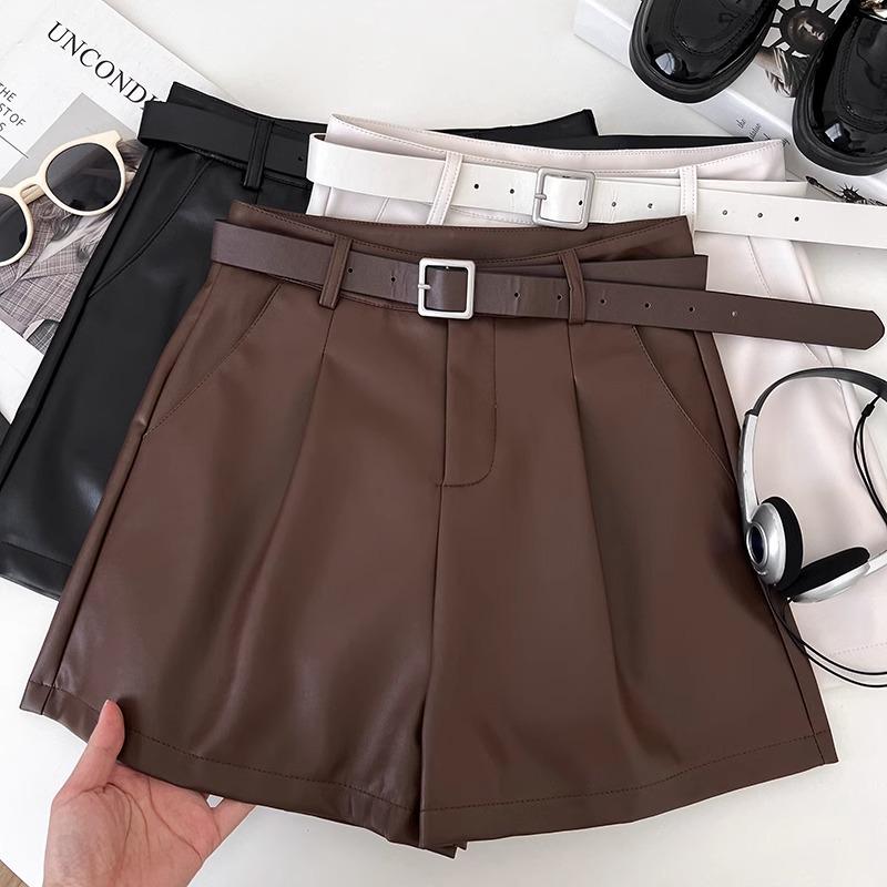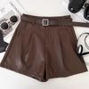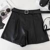 Damen Schwarze PU-Leder High-Waist Weitbein-Shorts - Herbst/Winter 2024 Kollektion