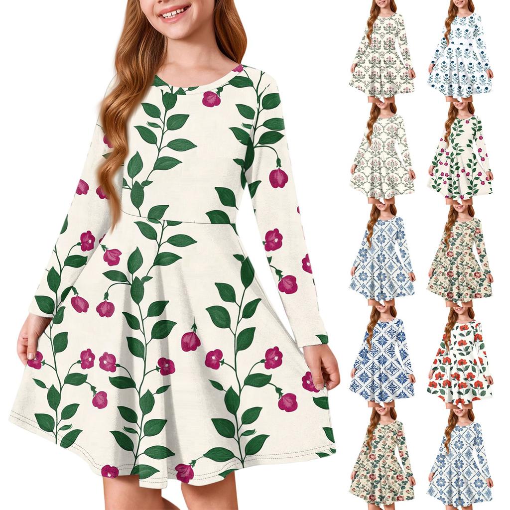 Sommer-Prinzessinenkleid für Mädchen - Langärmeliges A-Linien-T-Shirt-Kleid