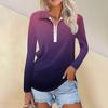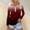 Damen Frühling und Mode Casual Printed Zipper V-Ausschnitt Langarm Shirt Tops