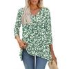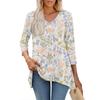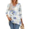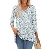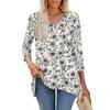 Damen Oberteile V-Ausschnitt 3/4 Ärmel Blusen Lässige Mittellange Hemden Mode Druck Tunika Oberteile