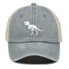 Pure White Dinosaur Print Snapback Trucker Hat, Animal Man's Cap Vintage Solid Color Non-Stretch Fabric Headwear Adjustable Baseball Cap