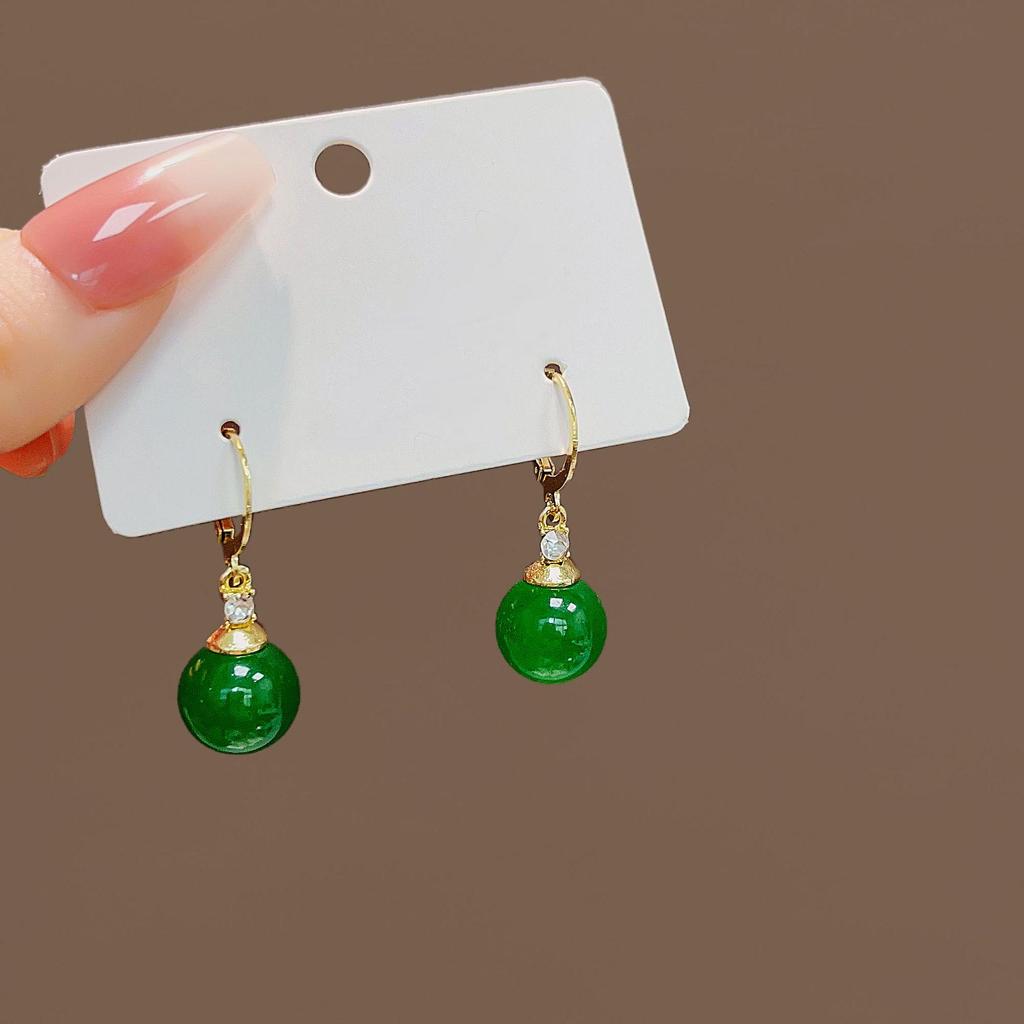 Retro Grüne Achat Perlen Ohrklemmen: Nischen-Literarische Ohrringe für Frauen