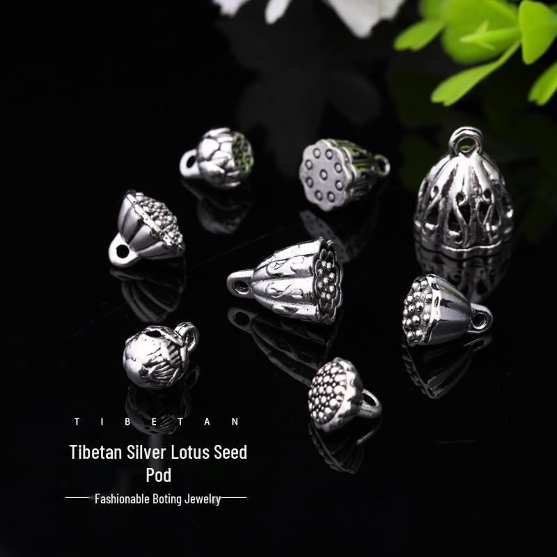 Anhänger Lotus-Kapsel aus tibetischem Silber: Vintage Blumenhalter Anhänger & Perlen für DIY Schmuck und Armbänder