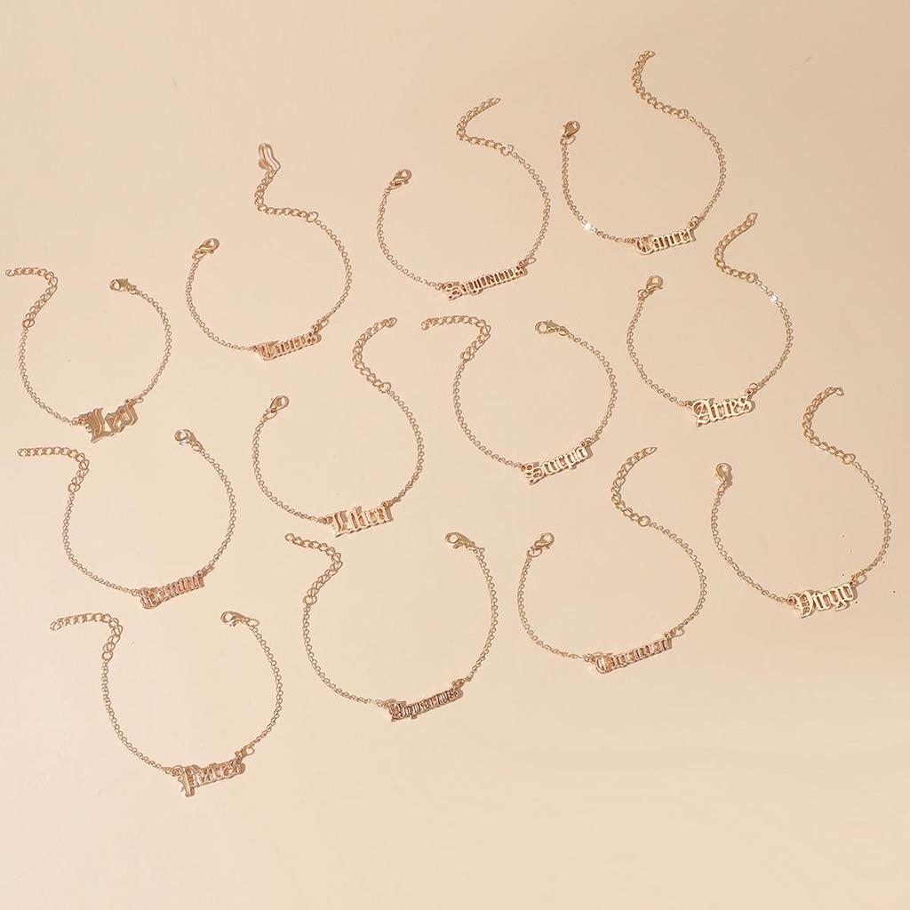12-Piece Retro European & American Bracelet Set with Constellation Pendants and English Letters - Unisex Fashion Accessory