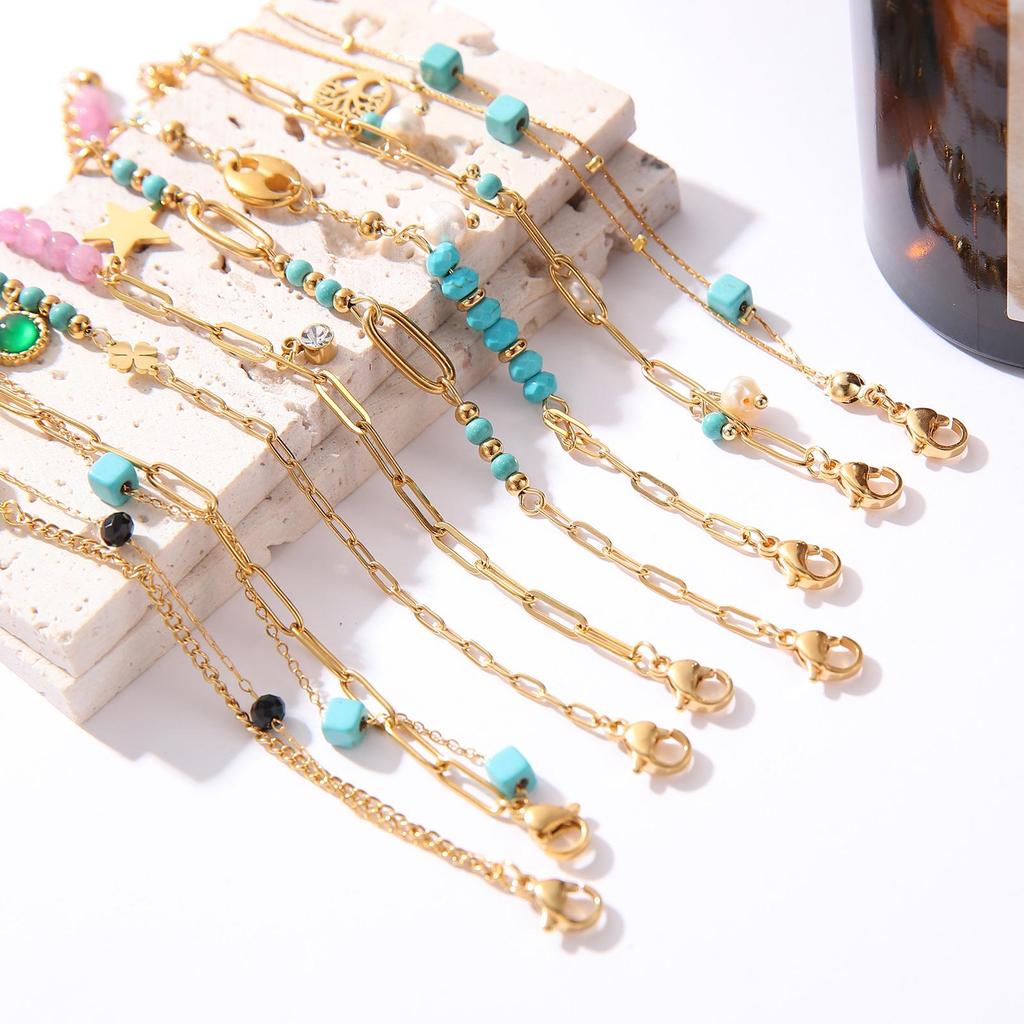 Damen Retro Türkis Titanstahl Perlenarmband - High-End Modeschmuck