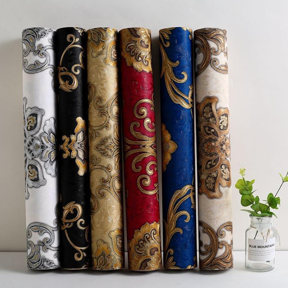 Europäischer Stil Luxus Damast Tapetenrolle 3D Geprägt Pvc Verdickt Wandbild Dekor Tapeten für Wohnzimmer Schlafzimmer