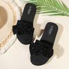 Damen Elegante Mode Flache Schleifen-Slipper Schwarz Bequem Vielseitig Wunderschön Strass Urlaub Coole Slipper