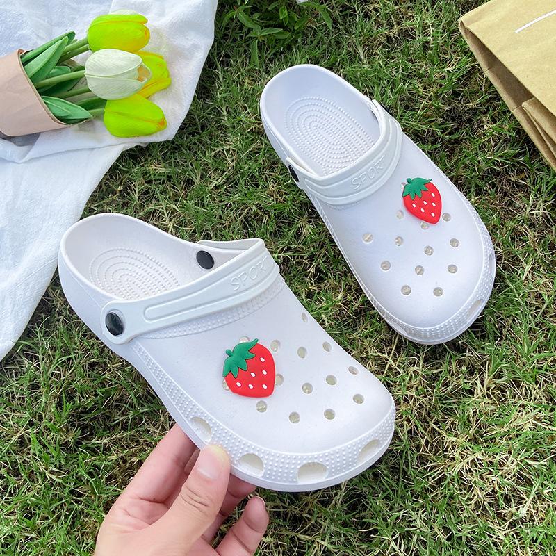 Neue Erdbeer-Lochschuhe Damen Sommer Mode Mädchen Niedlich Oberbekleidung Strandsandalen Taschenkopfschuhe Rutschfeste Hausschuhe Damen