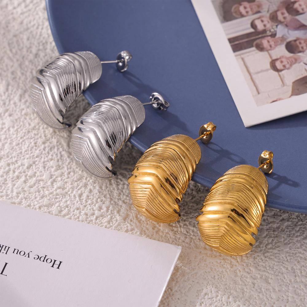 Vintage French Feather-Shaped Earrings, Elegant 18K Gold-Plated Titanium Steel, Retro Design, Versatile New Jewelry.