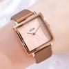 Gedi Damen Retro Großes Zifferblatt Quadratisches Lederarmband Wasserdicht Quarz Uhr mit Datum