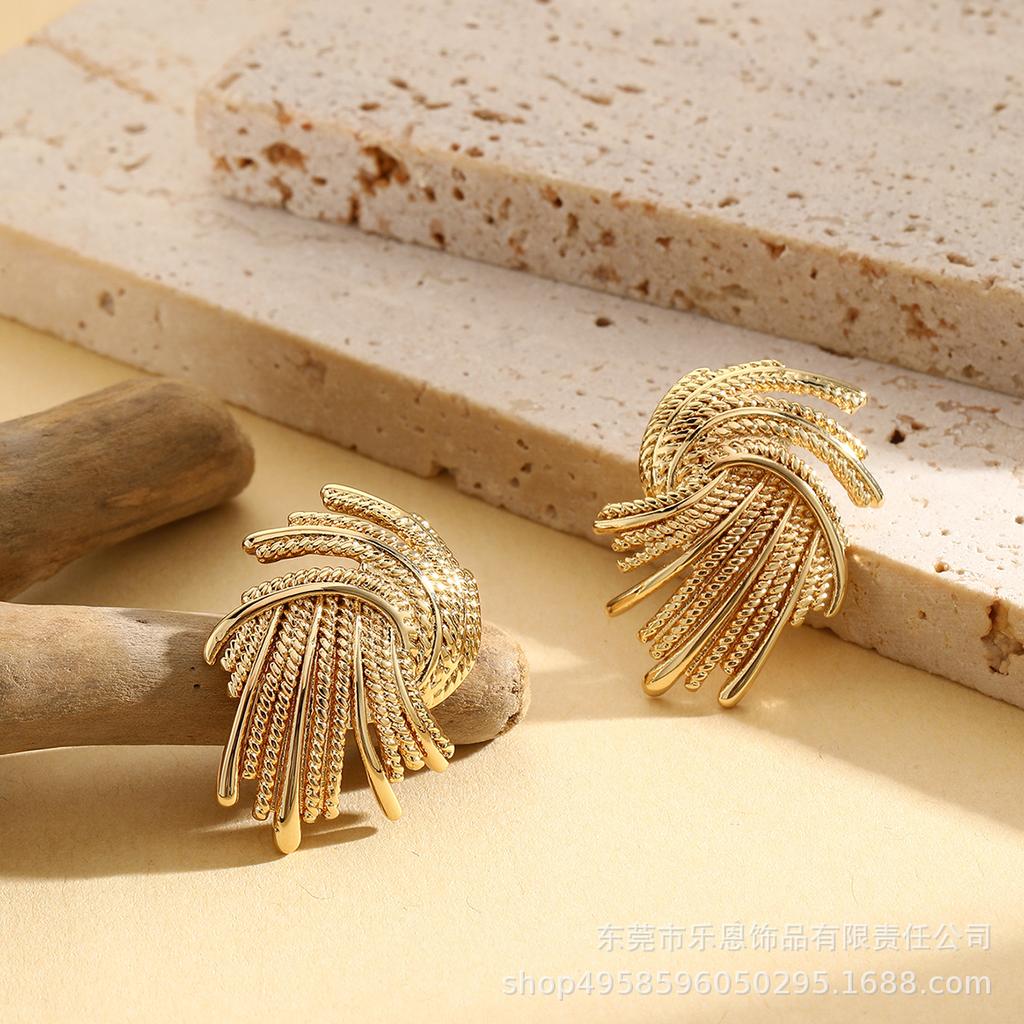 Gold Retro Irregular Shaped Stainless Steel Stud Earrings for Women – Trendy and Exaggerated European and American Style