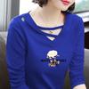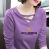 2025 Spring & Autumn Pure Cotton V-Neck Printed Long Sleeve Plus Size T-Shirt for Middle-Aged Women, Age-Reducing & Slimming Design.