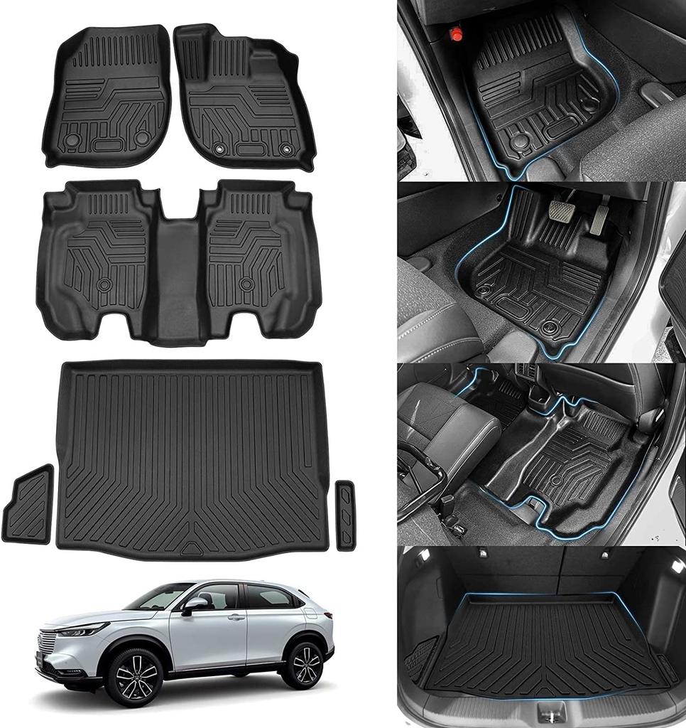 Jiooy Honda New Vezel RV Serie Fußmatten Kofferraummatten Set VEZEL RV3 RV4 RV5 RV6 3D Automatte Wasserdichte Matte Auto Kofferraummatte Hoher Rand Schmutzabweisend