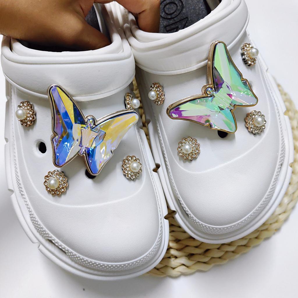 Neue Passform Lochschuhdekoration DIY Symphonie Schmetterling Sonne Perlen Set Schuhschnallen Zubehör Schuhblume