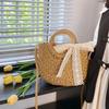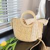 Damen Stroh Webtasche Mode Schultertasche Große Kapazität Handgewebte Tragetasche Kordelzug Schicke Hobo-Tasche Sommer Strandtasche