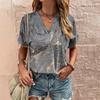 Damen T-Shirt Sommer V-Ausschnitt Kurzarm Oberteil Muster Bedruckt Outdoor T-Shirt Damen Lässig Cowboy Bedruckte Kleidung Street T-Shirt