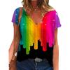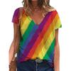 Damen T-Shirts mit 3D-Regenbogenherz-Aufdruck, lässiges Kurzarm-V-Ausschnitt-T-Shirt Y2k Harajuku LGBT Pride, Damenbekleidung