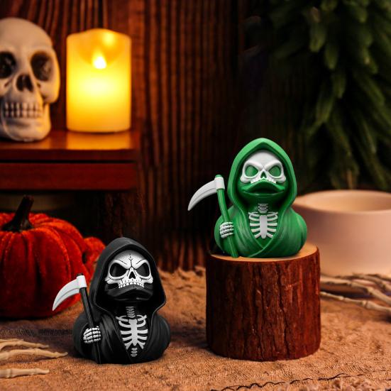 Scythe Skelett Ente Figur Harz Gotische Ente Ornament Skelett Ente Sammlerstatue für Halloween Deko Zuhause Büro Schreibtisch