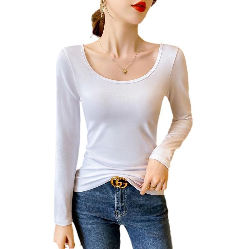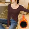 Unterhemd Damen Herbst und Winter Neu Samt Verdickt U-Ausschnitt Langarm Thermotop